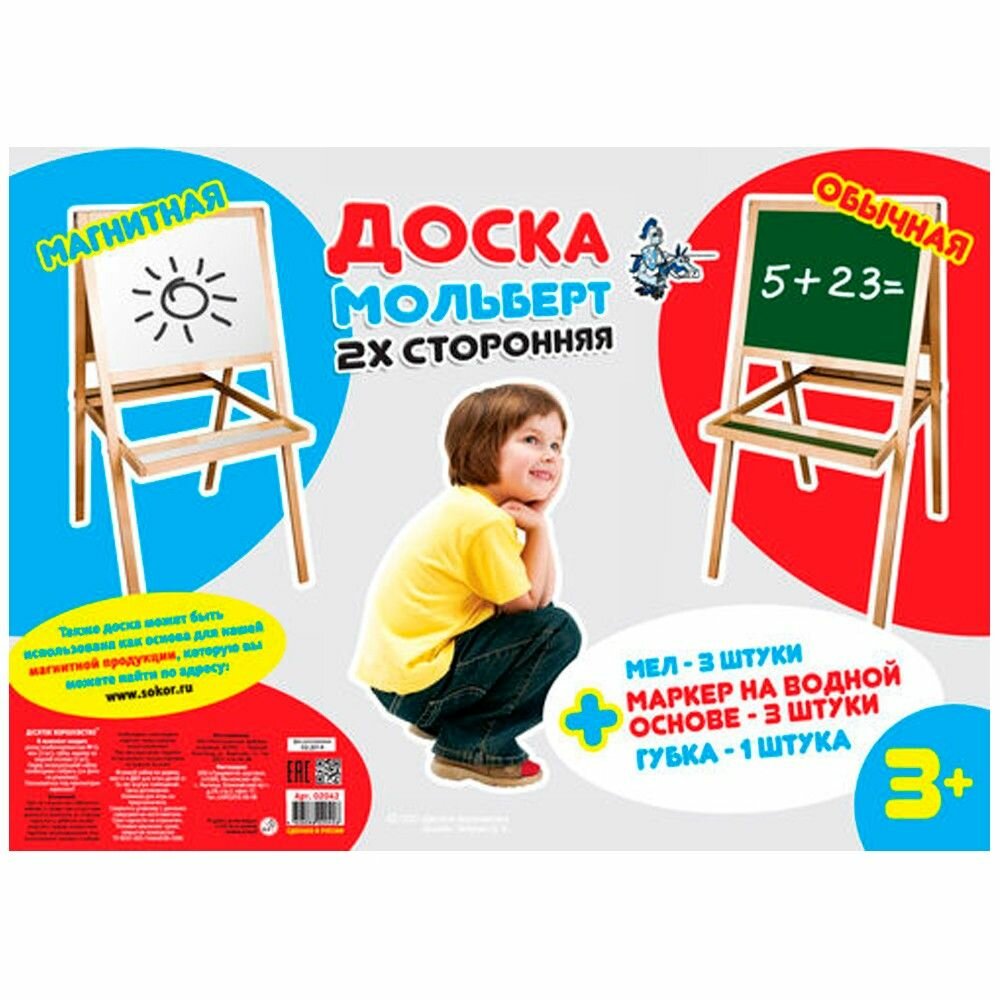 Мольберт детский Nika двусторонний Доска знаний ДЗМ2 с учебными принадлежностями