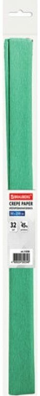 Бумага цветная крепированная Brauberg, 50x250см, плотная, растяжение до 45%, 32 г/кв.м, светло-зеленая, в рулоне, 1 лист (126536)