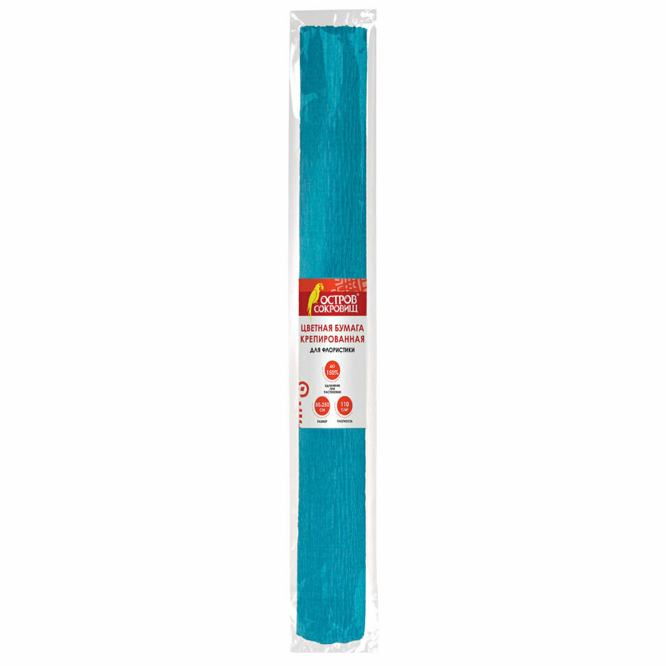 Бумага гофрированная (креповая) для флористики, 110 г/м2, голубая, 50х250 см, остров сокровищ, 129147, 1 шт