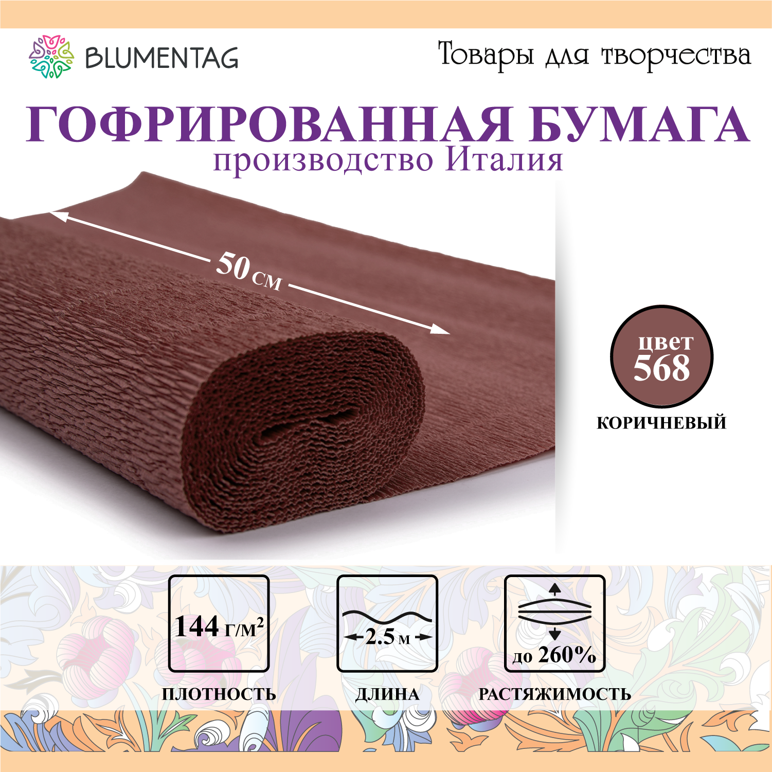 Купить Blumentag Гофрированная бумага GOF-180 50 см х 2.5 м 180 г/м2 568 коричневый