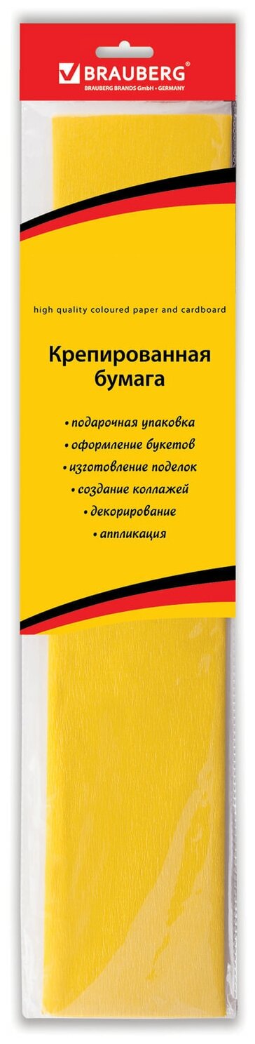 Купить Бумага крепированная BRAUBERG, 50*200см, 25г/м2, желтая