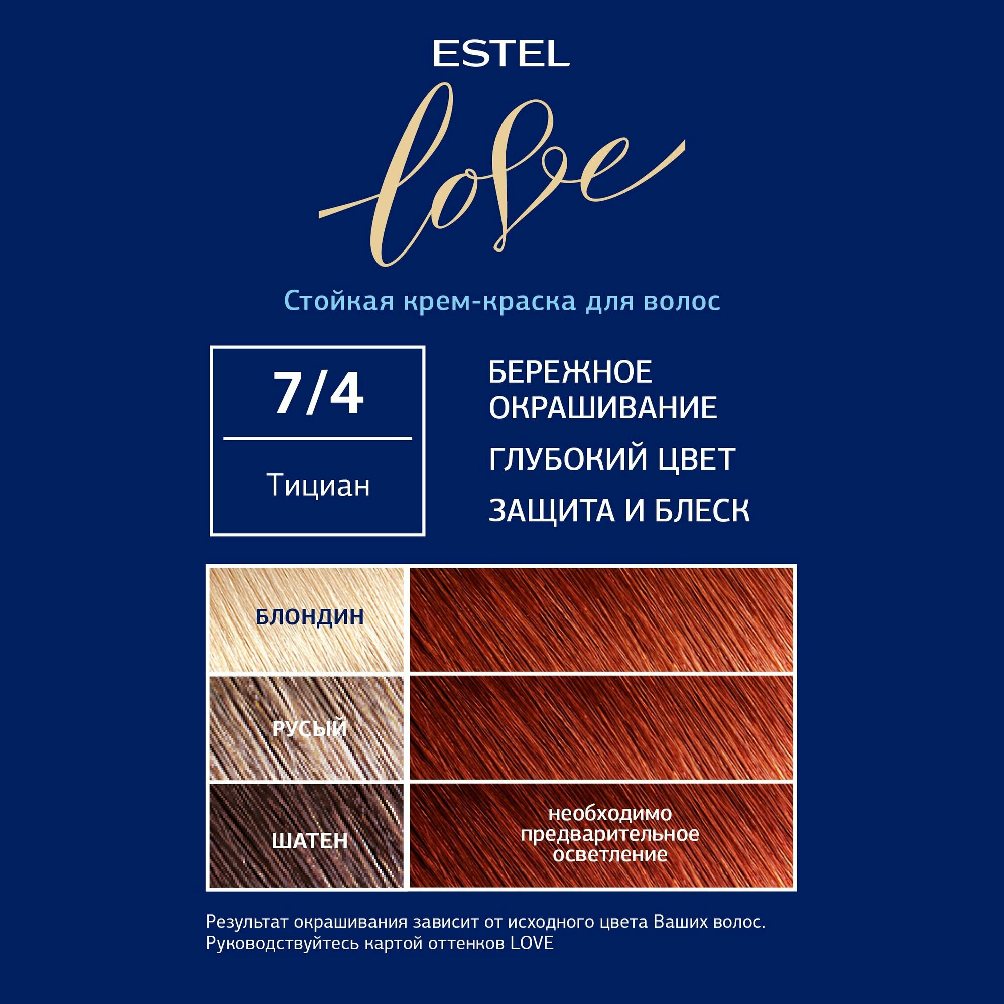 ,115млESTEL Love Стойкая крем-краска для волос, 7/4 тициан,115мл