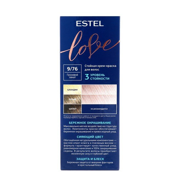 Ниже Вы можете прочитать отзывы на Крем-краска д/волос ESTEL Love 9.76 Грозовой закат, ознакомится с подробными характеристиками, посмотреть интересные обзоры и фотографии на Крем-краска д/волос ESTEL Love 9.76 Грозовой закат.