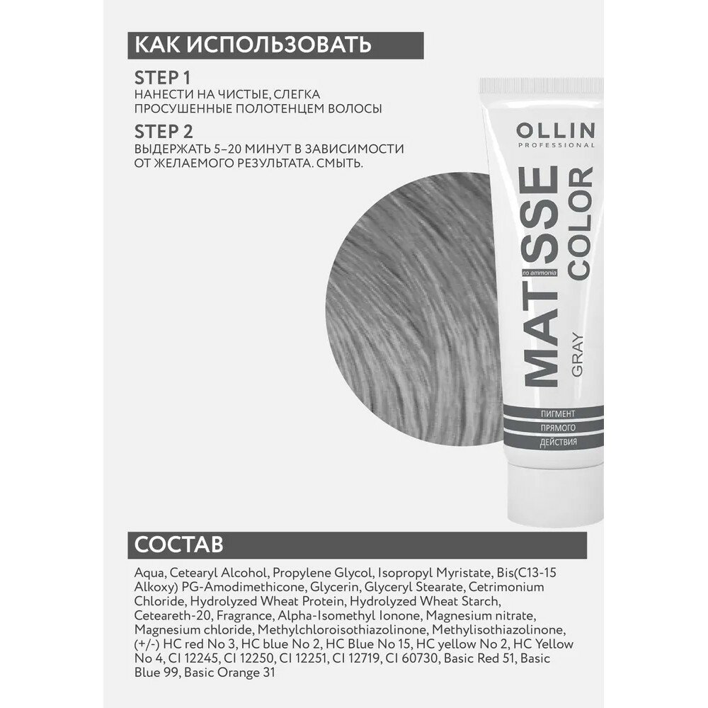 OLLIN, Пигмент для волос прямого действия Matisse Color, серый 100мл