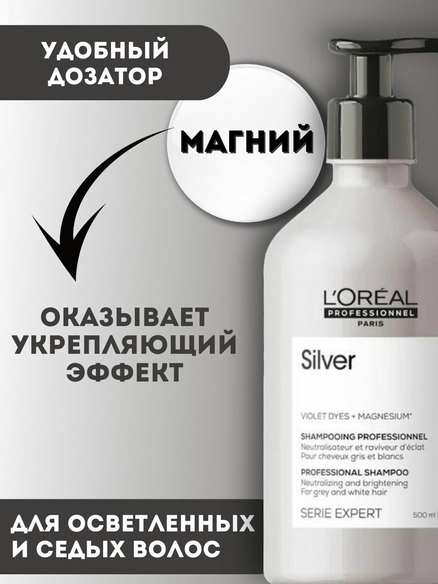 L'Oreal Professionnel шампунь Expert Silver для нейтрализации желтизны осветленных и седых волос, 500 мл
