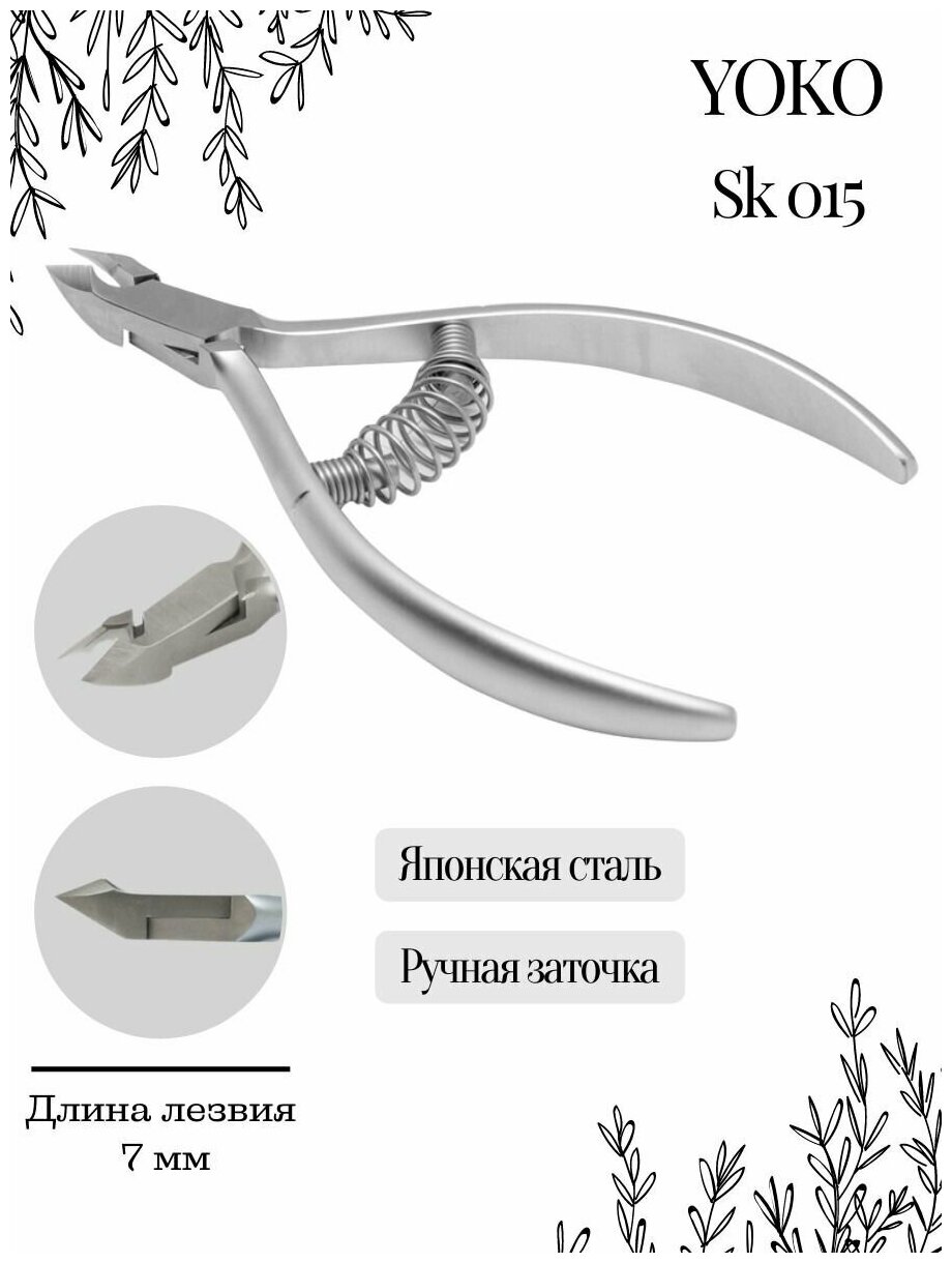 YOKO Маникюрные кусачки ручная заточка Y SK 015, спиральная пружина, 7 мм