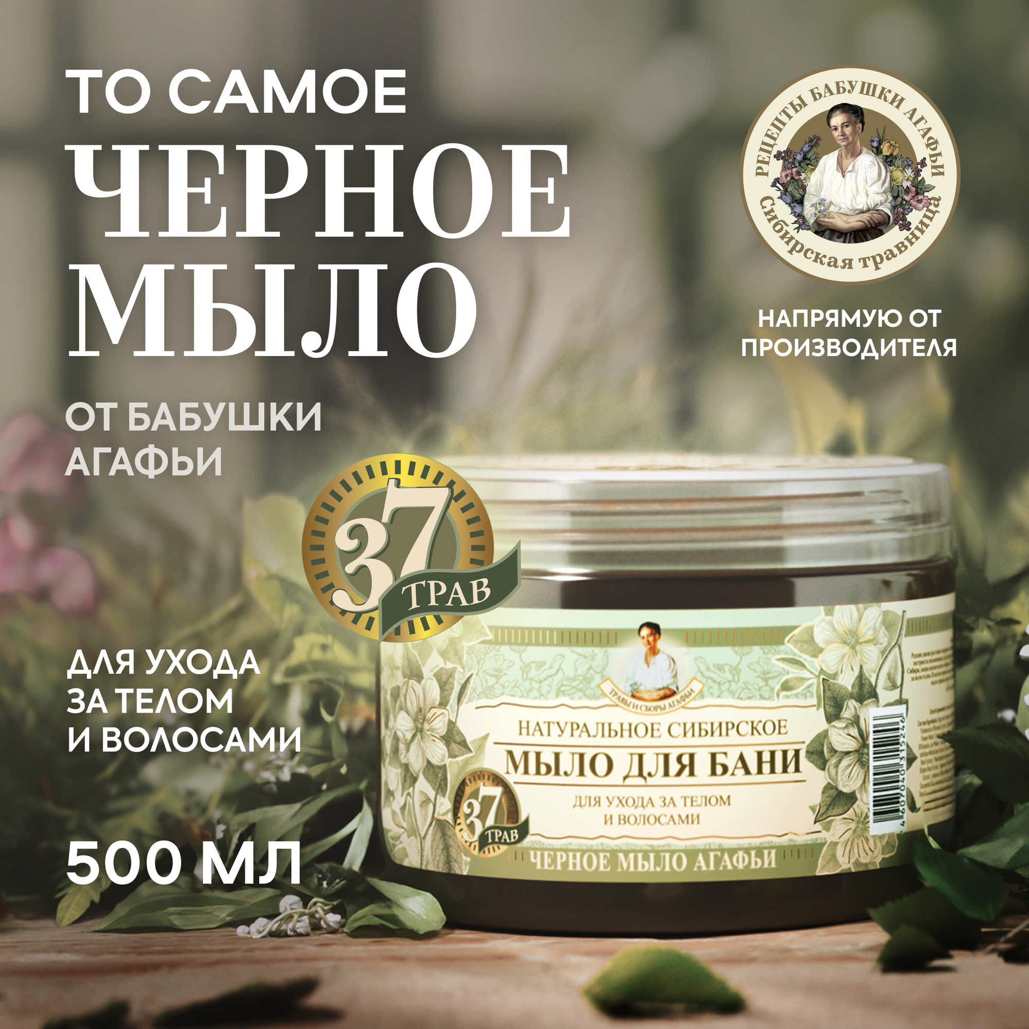Купить Мыло для бани Травы и сборы Агафьи «Натуральное Сибирское», чёрное, 500 мл