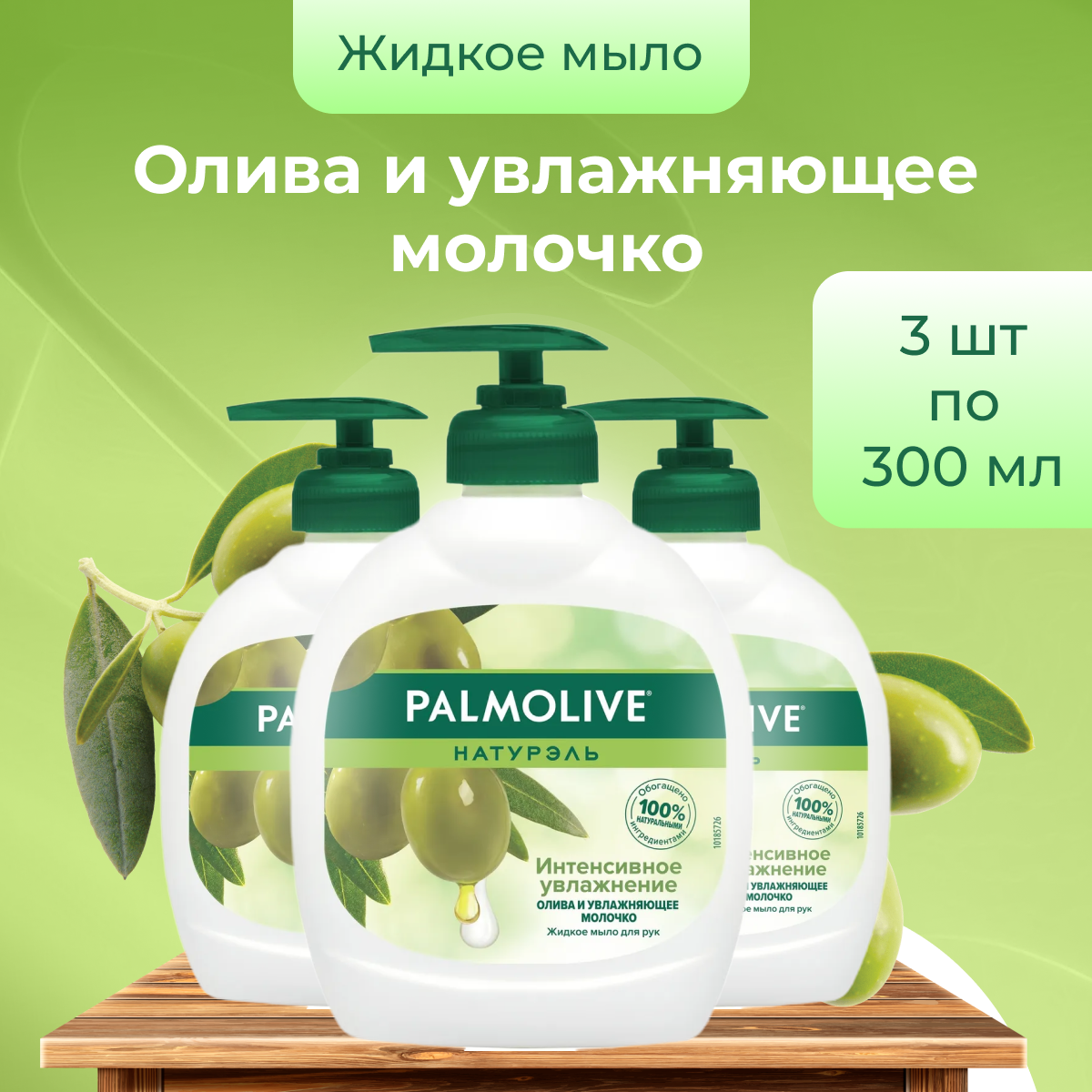 Жидкое мыло PALMOLIVE Натурэль Интенсивное увлажнение Олива и увлажняющее молочко, 300мл - 3 шт.
