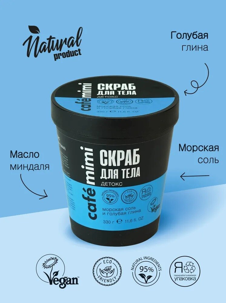 Скраб для тела CAFE MIMI Детокс, морская соль и голубая глина, 330 гр