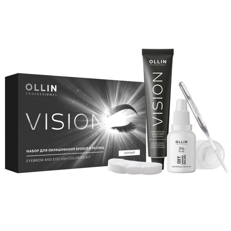 OLLIN Professional Набор для окрашивания бровей и ресниц Vision, черный, 20 мл, 1 уп.