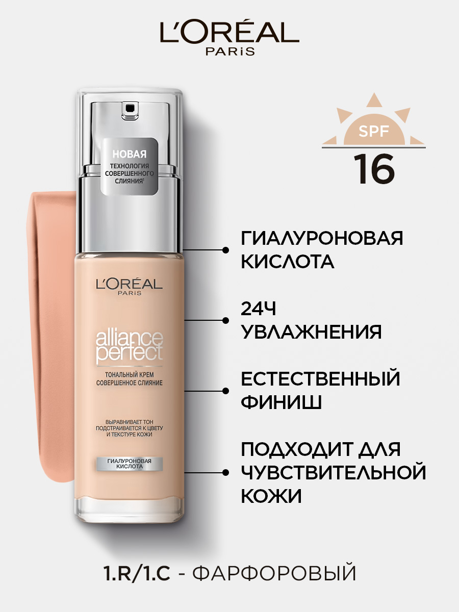 Купить L'Oreal Paris, Тональный крем ALLIANCE PERFECT совершенное слияние обогащенный гиалуроновой кислотой, тон 1.R / 1.C, SPF 16, 30 мл