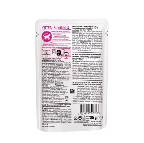 Royal Canin Kitten Sterilised влажный корм для стерилизованных котят в возрасте от 6 до 12 месяцев, мелкие кусочки в соусе, в паучах - 85 г