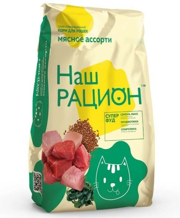 Наш рацион сухой полнорационный корм для взрослых кошекмясное ассорти 400гр