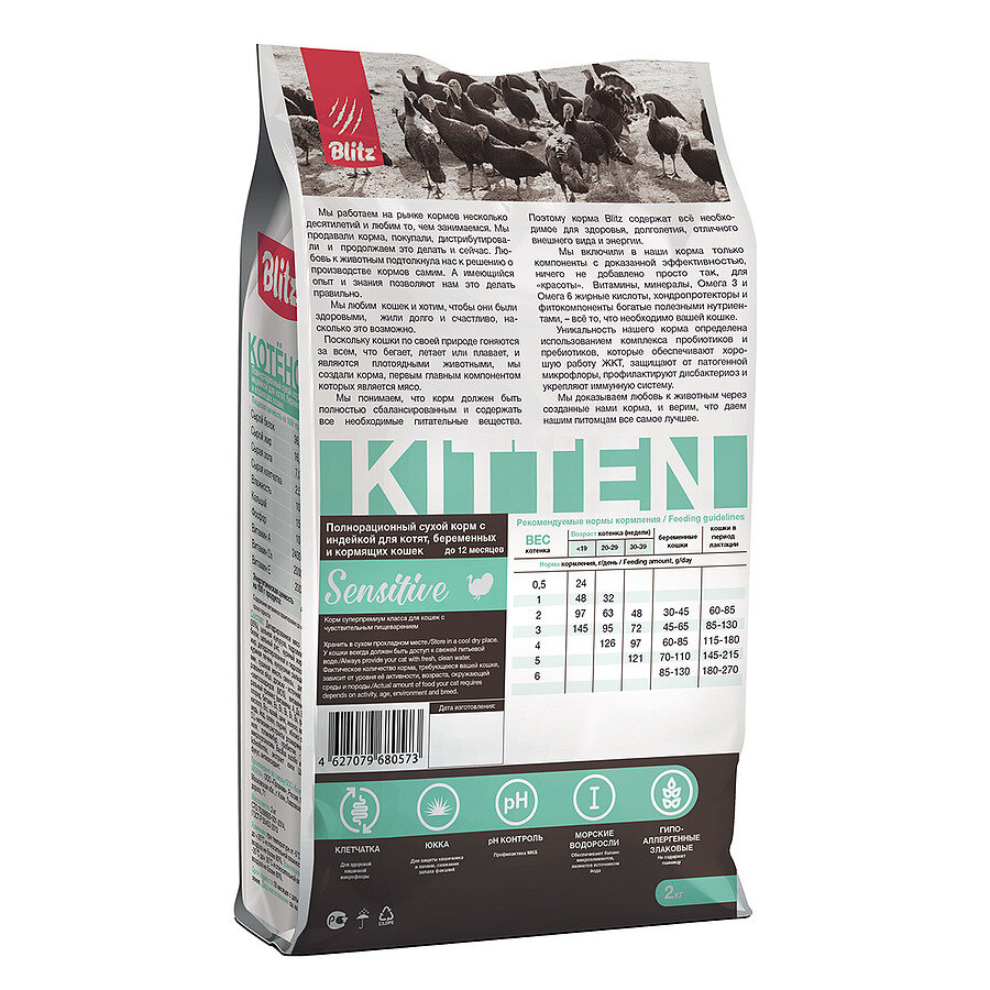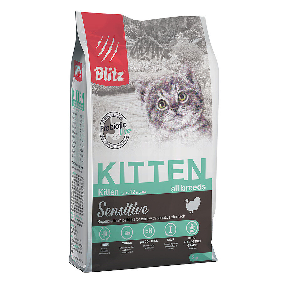 Корм Blitz Sensitive Kitten для котят, беременных и кормящих кошек, с индейкой, 2 кг