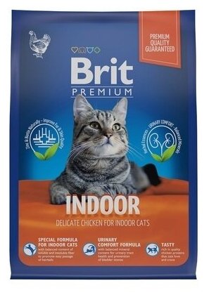 Корм сухой Brit Premium Cat Indoor для кошек домашнего содержания, с курицей 2 кг