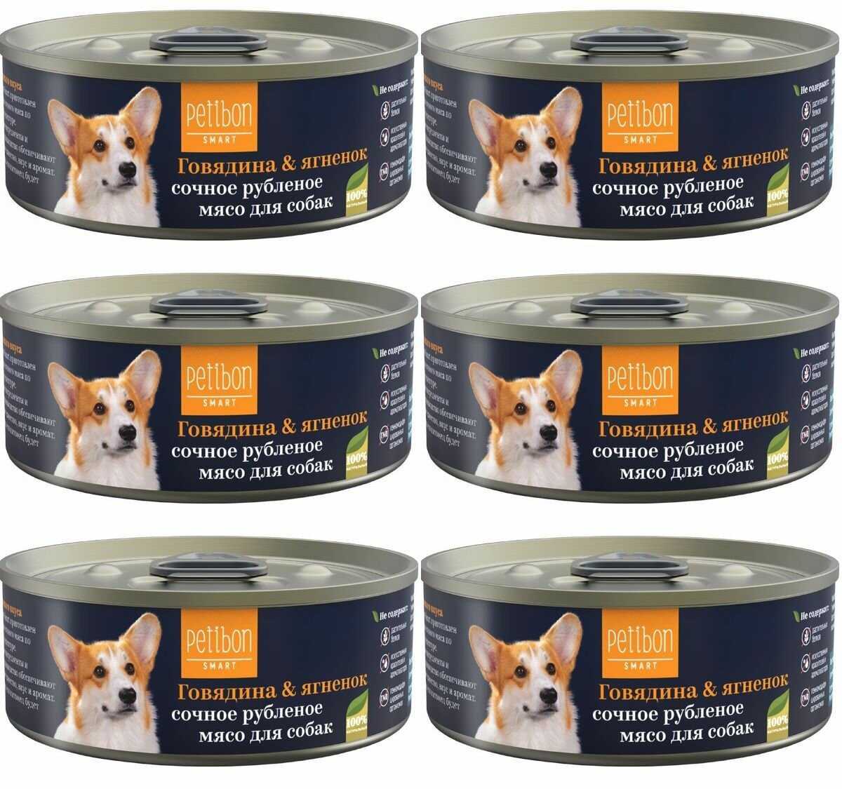 Petibon Корм влажный для собак Smart Рубленое мясо с говядиной и ягненком 100 г x 6 шт