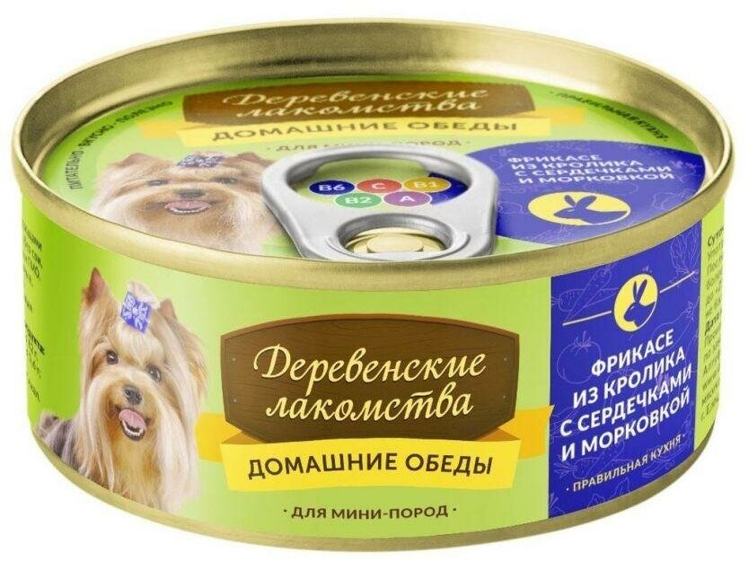 Купить Деревенские лакомства Домашние Обеды консервы для собак мини пород (фрикасе из кролика с сердечками и морковкой), 100г 0.1 кг