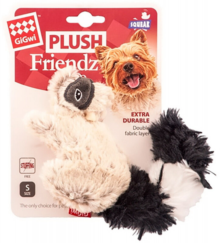 Игрушка для собак GiGwi / ГиГви Plush Friendz Енот с пищалкой текстильная, серый 16см / жевательная для активных игр