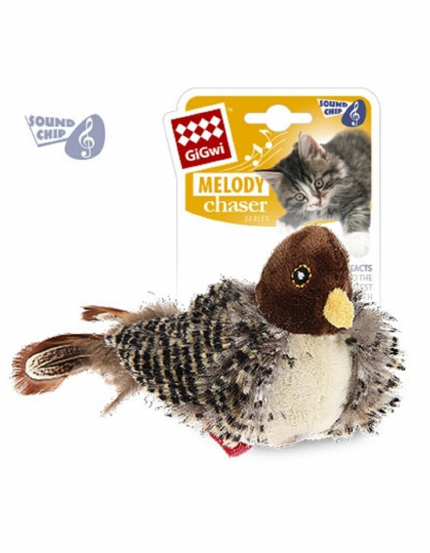 Игрушка для кошек GiGwi Melody Chaser Птичка со звуковым чипом (75306), серый/коричневый