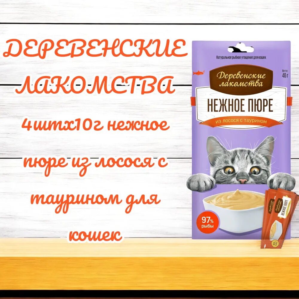 Лакомство для кошек деревенские лакомства Нежное пюре из лосося 4х10г