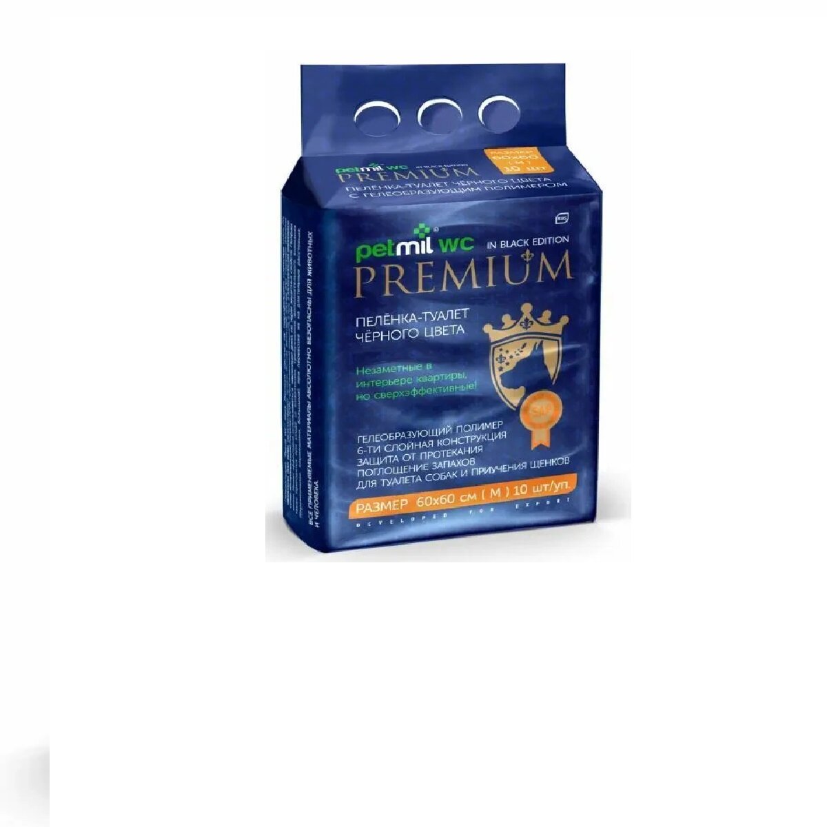 PETMIL Пеленки "BLACK Premium" впитывающие гелевые, 60 х 60 см (в наборе 10 шт)