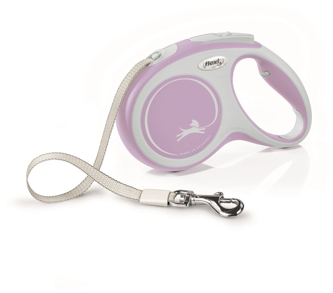 Flexi New Line Comfort XS Рулетка для собак весом до 25кг длинна 5м ленточный серо-розовая