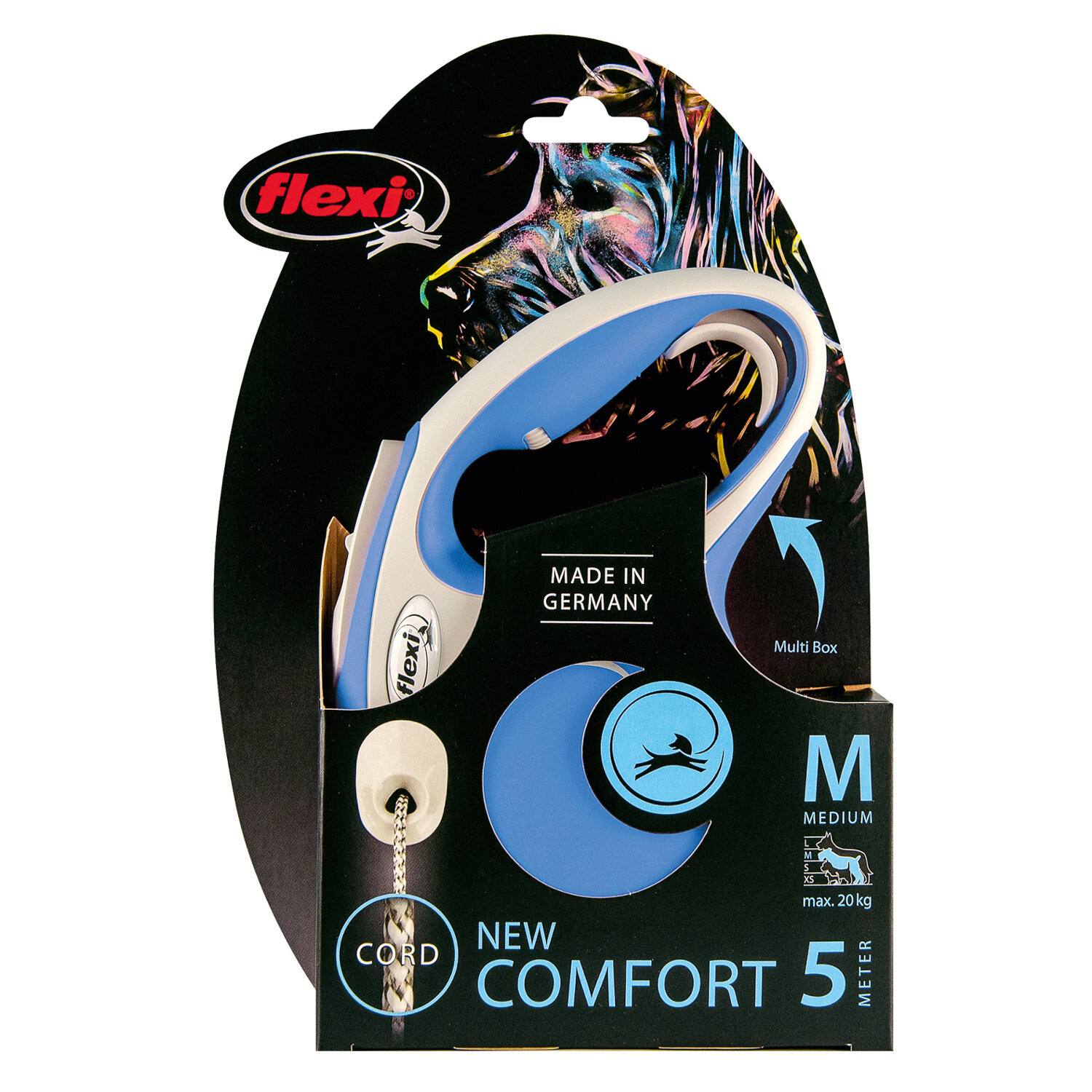 FLEXI NEW COMFORT CORD тросовый поводок рулетка для животных 5 м размер M голубой (1 шт)