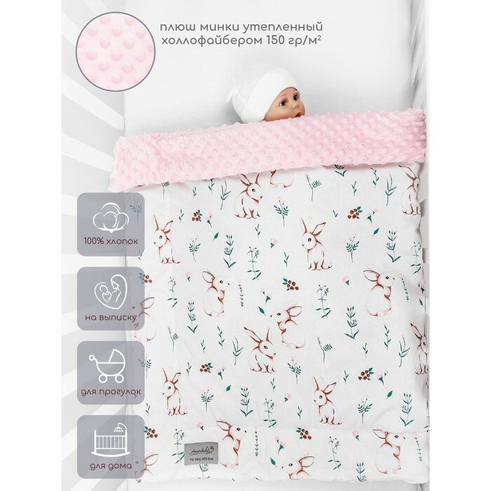 Купить Плед AmaroBaby растем вместе 95х85 хлопок/minky Rabbit, белый/розовый