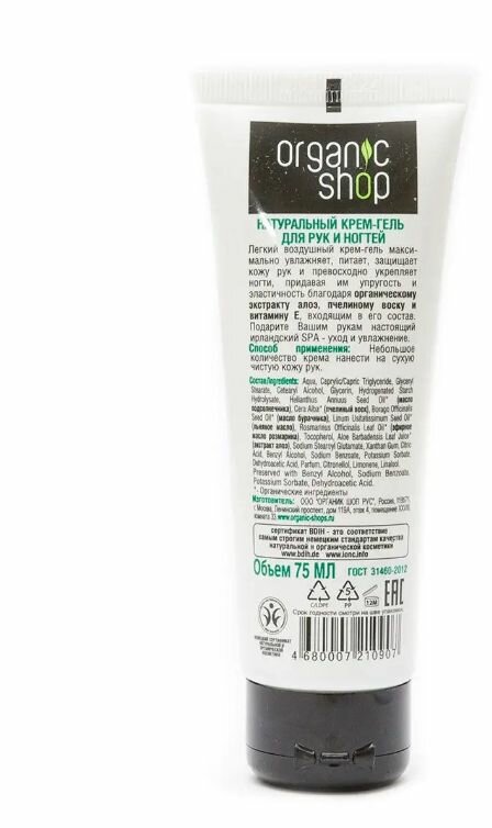 ORGANIC SHOP, Крем-гель для рук, Ирландский spa-маникюр, 75 мл интересное: