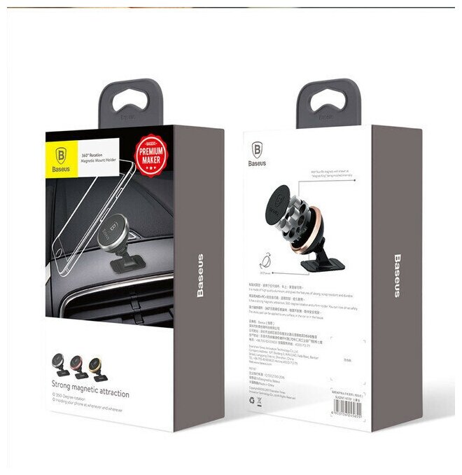 Baseus Магнитный держатель 360-degree Rotation Magnetic Mount Holder Luxury черный/золотой (SUGENT-NTOV)