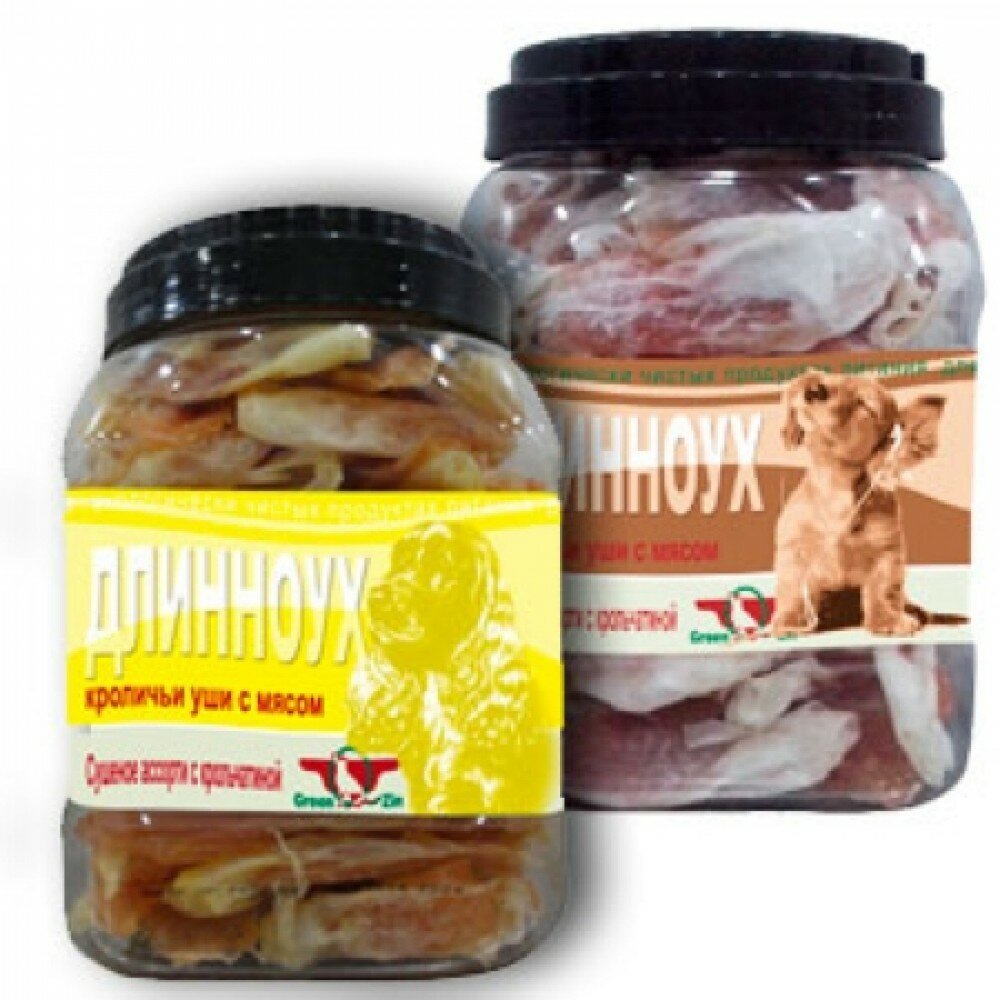 Лакомство для собак GreenQzin Длинноух (Кроличьи уши с мясом) туба Pack 500г