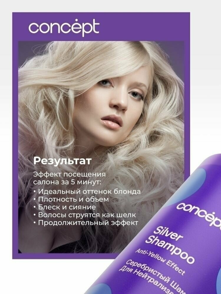 CONCEPT Серебристый шампунь для светлых оттенков, 300 мл