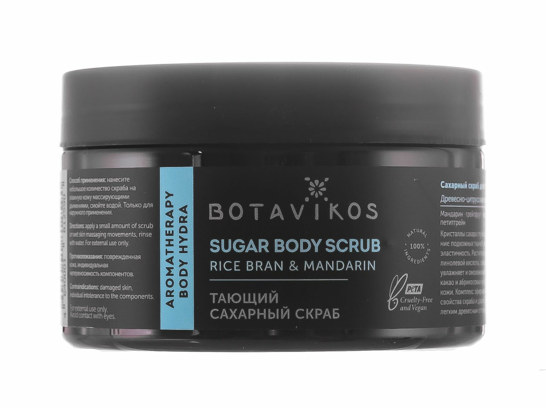 Botavikos Скраб сахарный Aromatherapy Hydra для тела с маслом рисовых отрубей и маслом мандарина 250 мл