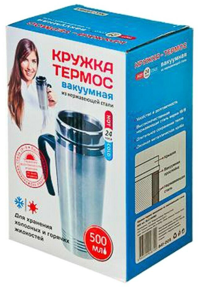 | Отзыв: | Хорошая кружка, держит тепло, крышку не нужно закручивать, просто захлопывается, без всяких надписей |