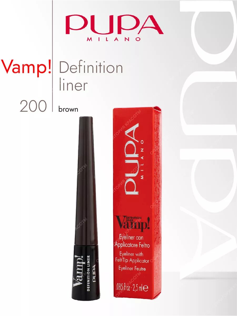 PUPA Подводка для глаз Vamp! Definiton Liner с фетровым аппликатором №200 Коричневая 2,5 мл (040037200)