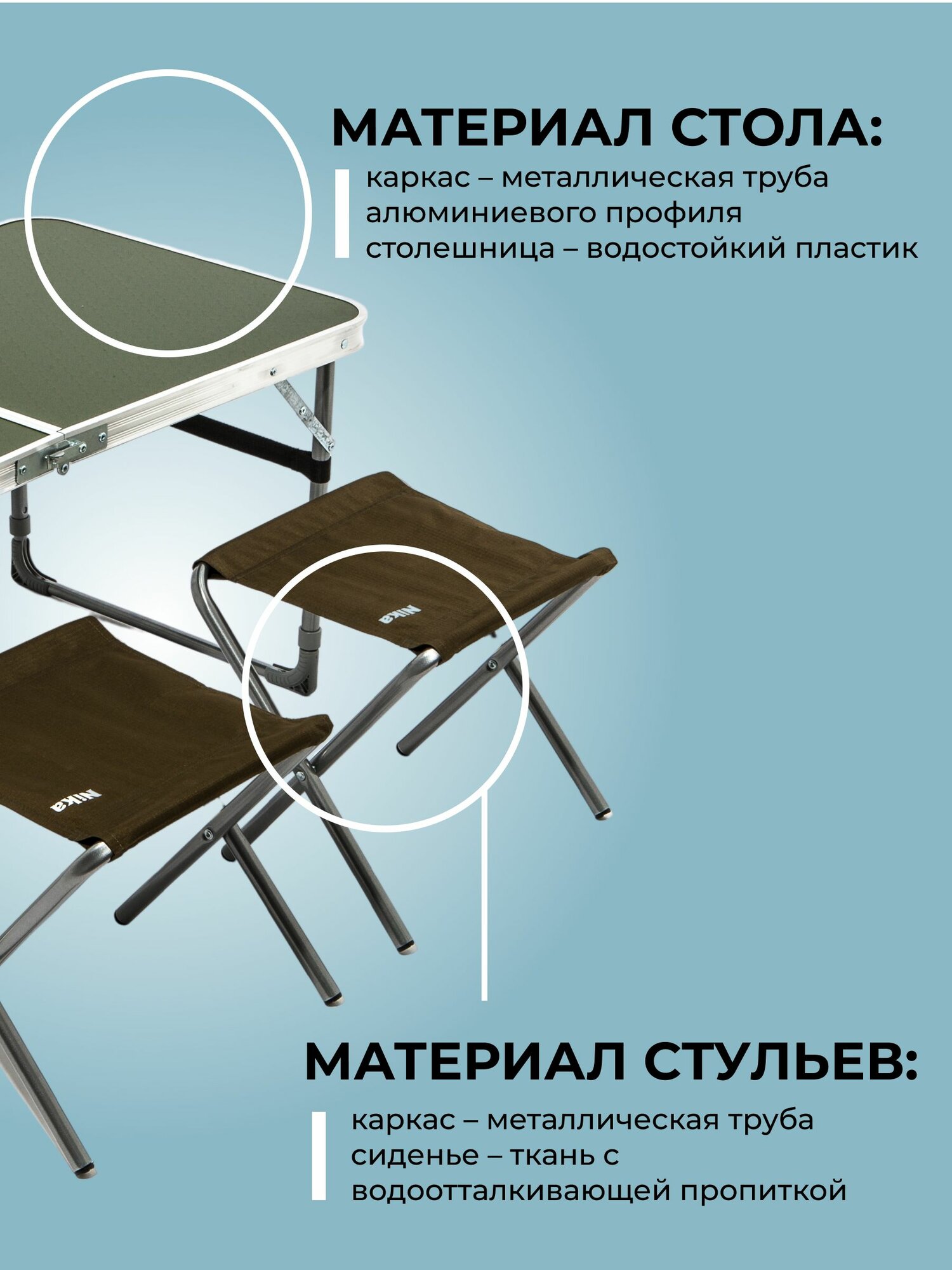 Набор складной мебели Nika ССТ-К2/2, стол + 4 стула, хаки-хаки