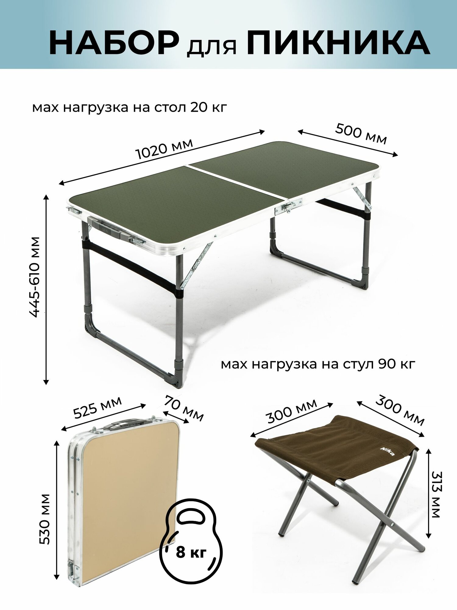 | Плюсы: | Компактность в сложенном состоянии, комплект с табуреточками, устойчивый |