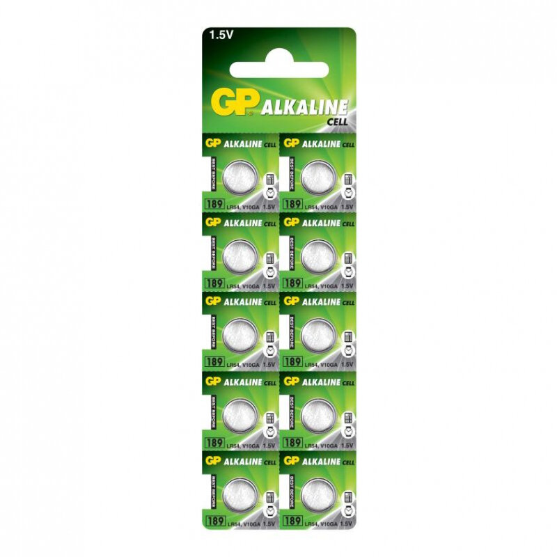 Купить Батарейка алкалиновая GP, LR54 (G10, V10GA, LR1130, 189)-10BL, 1.5В, блистер, 10 шт.