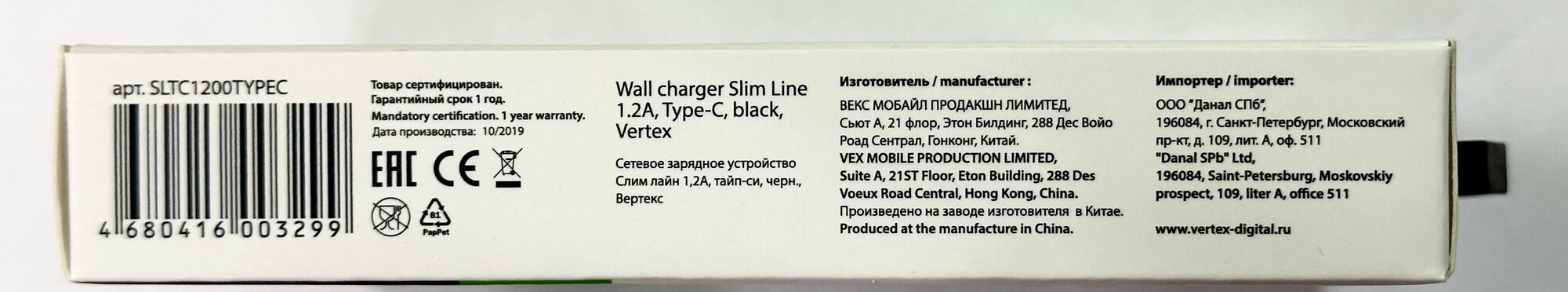 Сетевое зарядное устройство Type-C (USB-C) VERTEX Slim Line (SLTC1200TYPEC), черный интересное:
