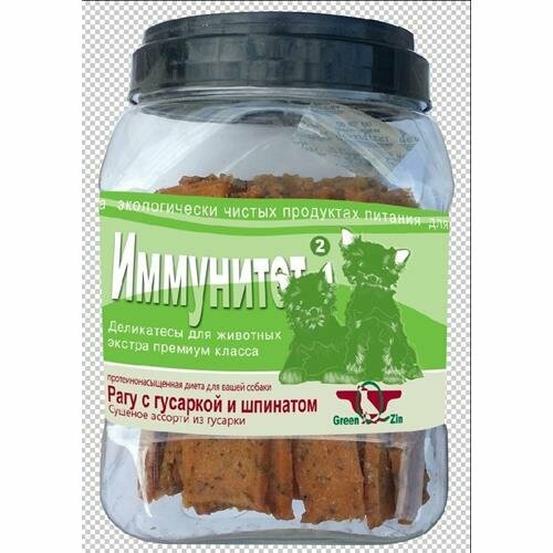 Лакомство для собак GreenQzin Иммунитет 2 (сушеное мясо гусарки и шпинат) туба 750г