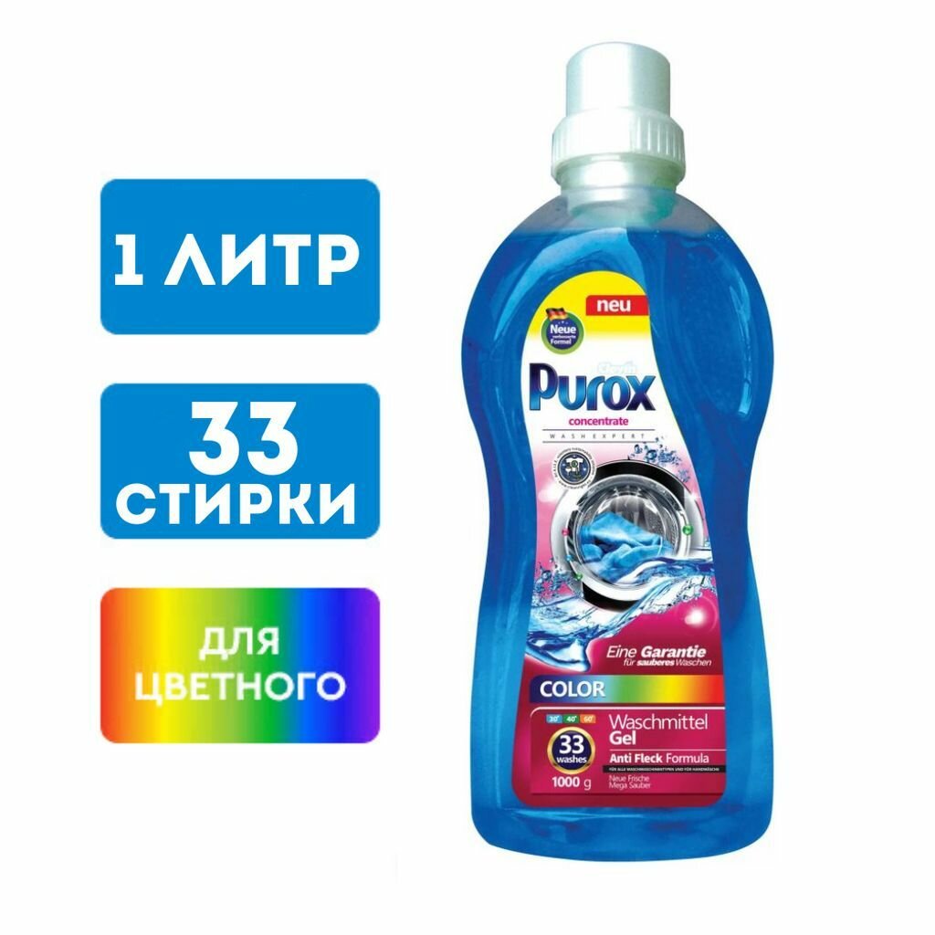 Гель для стирки Purox Color, 1 л, бутылка