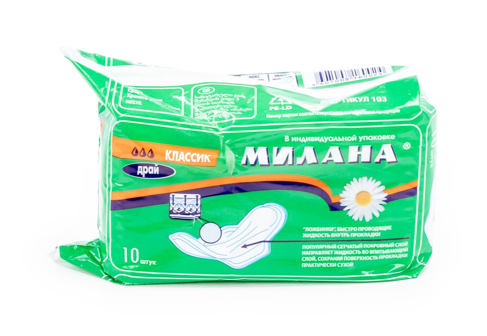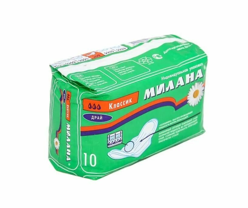 Прокладки женские гигиенические Милана Классик Драй (10 штук в упаковке)
