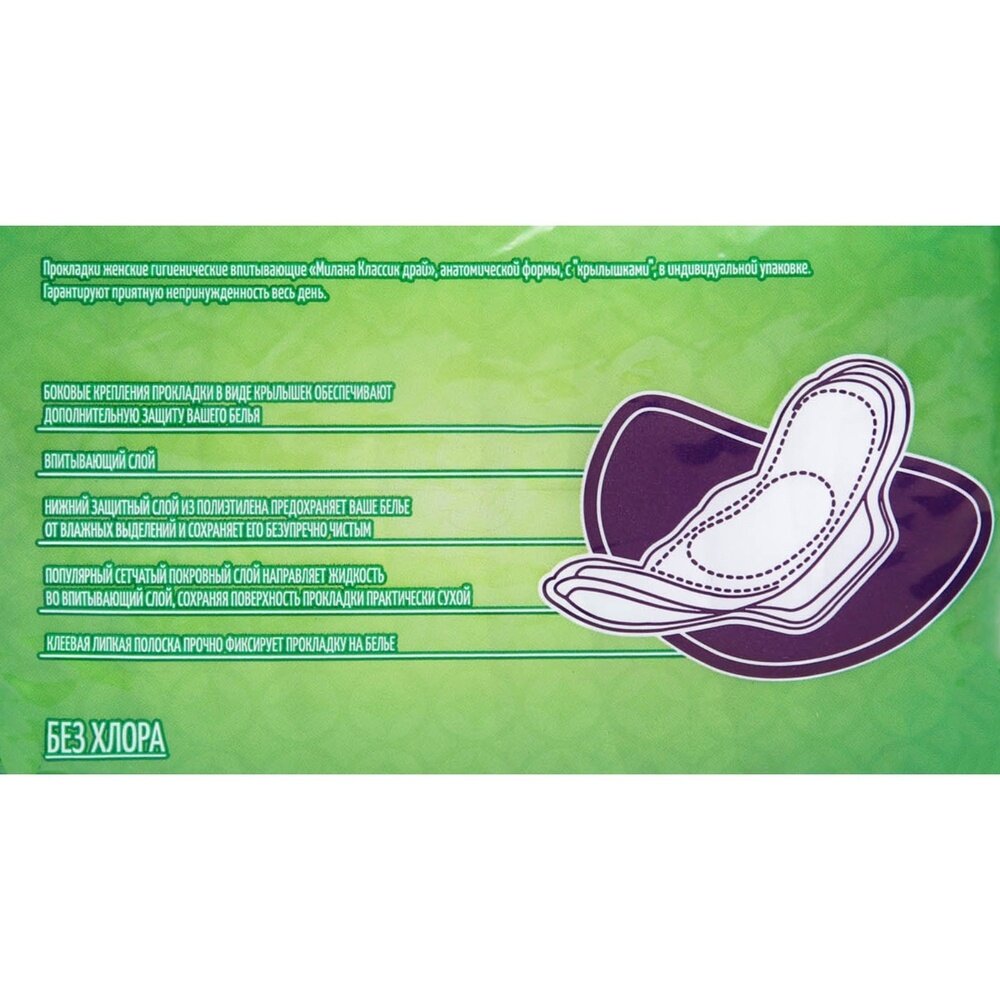Прокладки женские гигиенические Милана Классик Драй 3 капли дышащие с крылышками, пачка 10шт. / женская гигиена