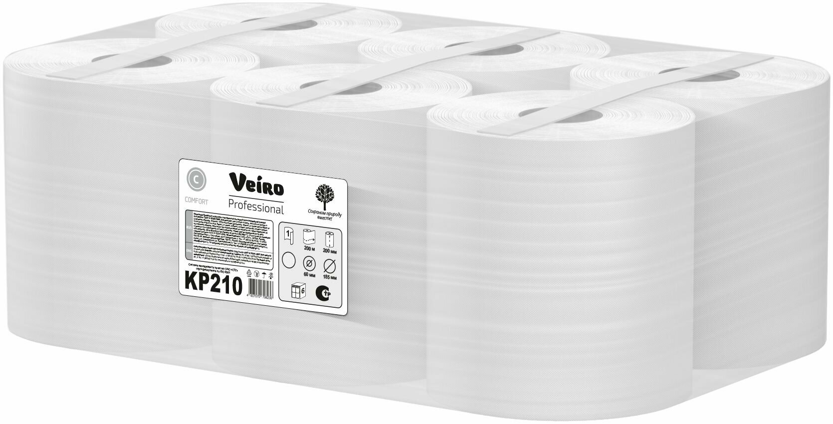 KP210 Бумажные полотенца в рулонах с центральной вытяжкой Veiro Professional Comfort белые однослойные (6 рул х 200 м)