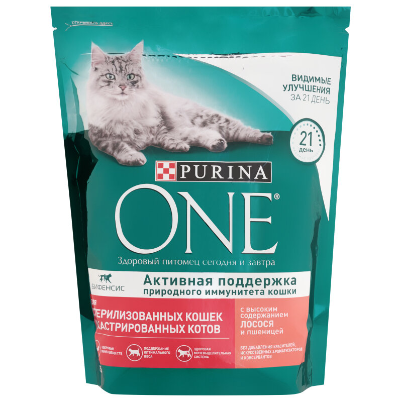 PURINA ONE для взрослых кастрированных котов и стерилизованных кошек с лососем и пшеницей (0,75 кг)