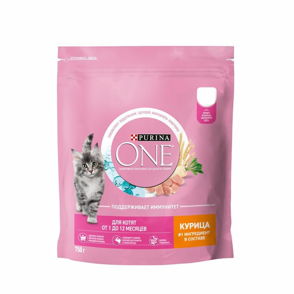 Сухой корм Purina ONE для котят с курицей и цельными злаками, 750 г