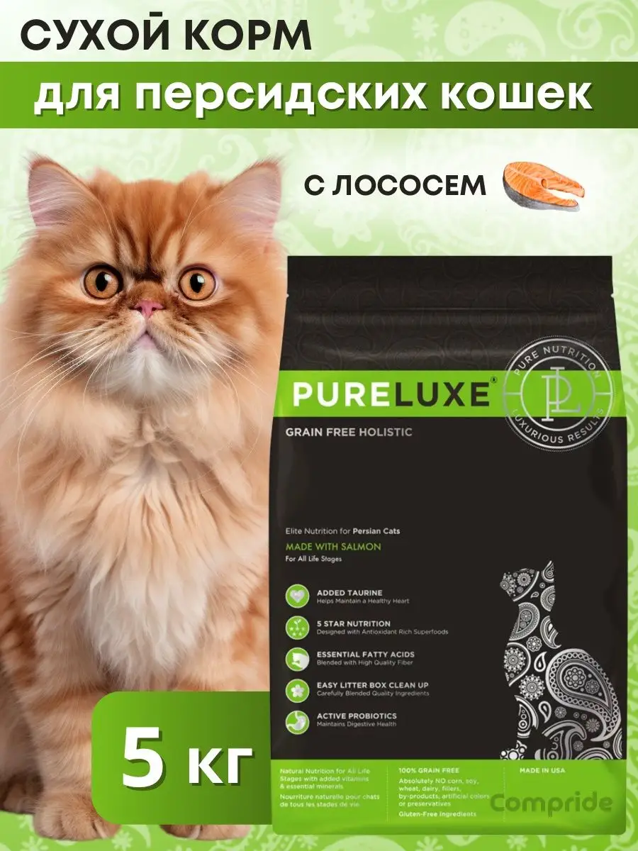 Купить Сухой корм для кошек PureLuxe породы Персидская, беззерновой, с лососем 5 кг