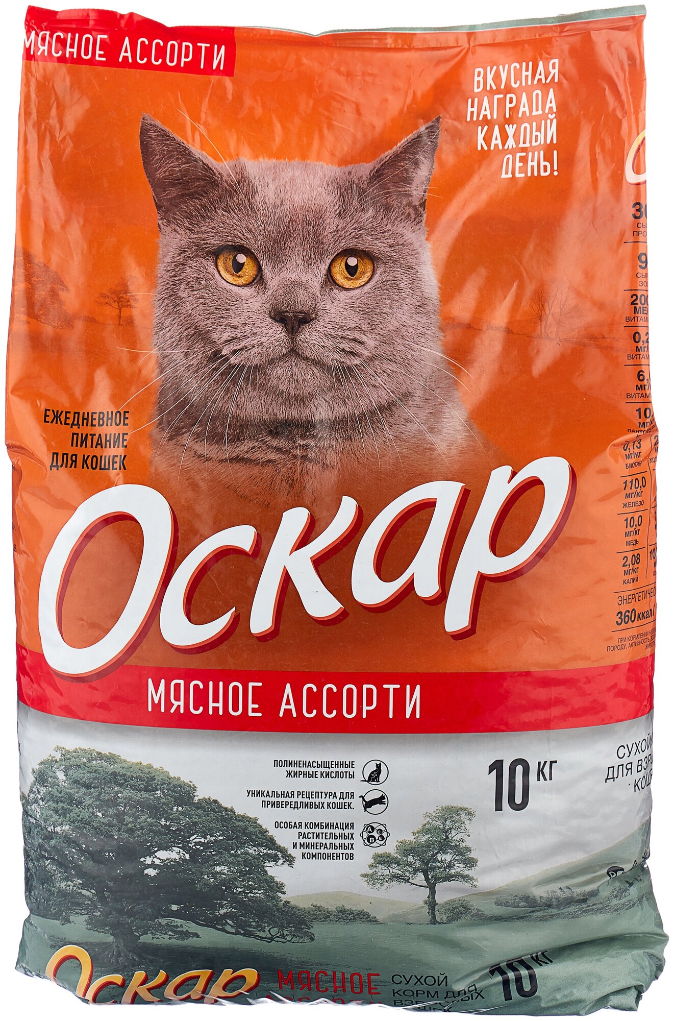 Корм сухой Оскар, мясное ассорти, для взрослых кошек, 10 кг