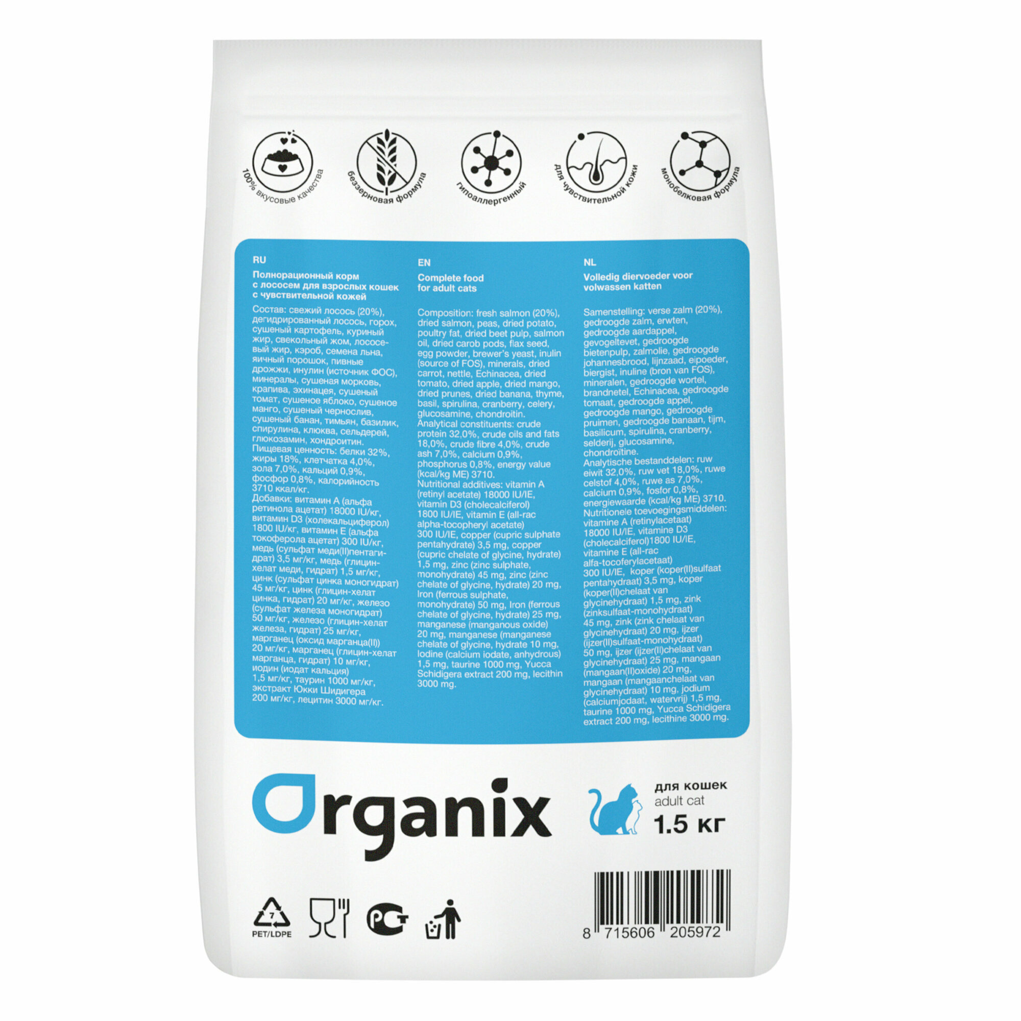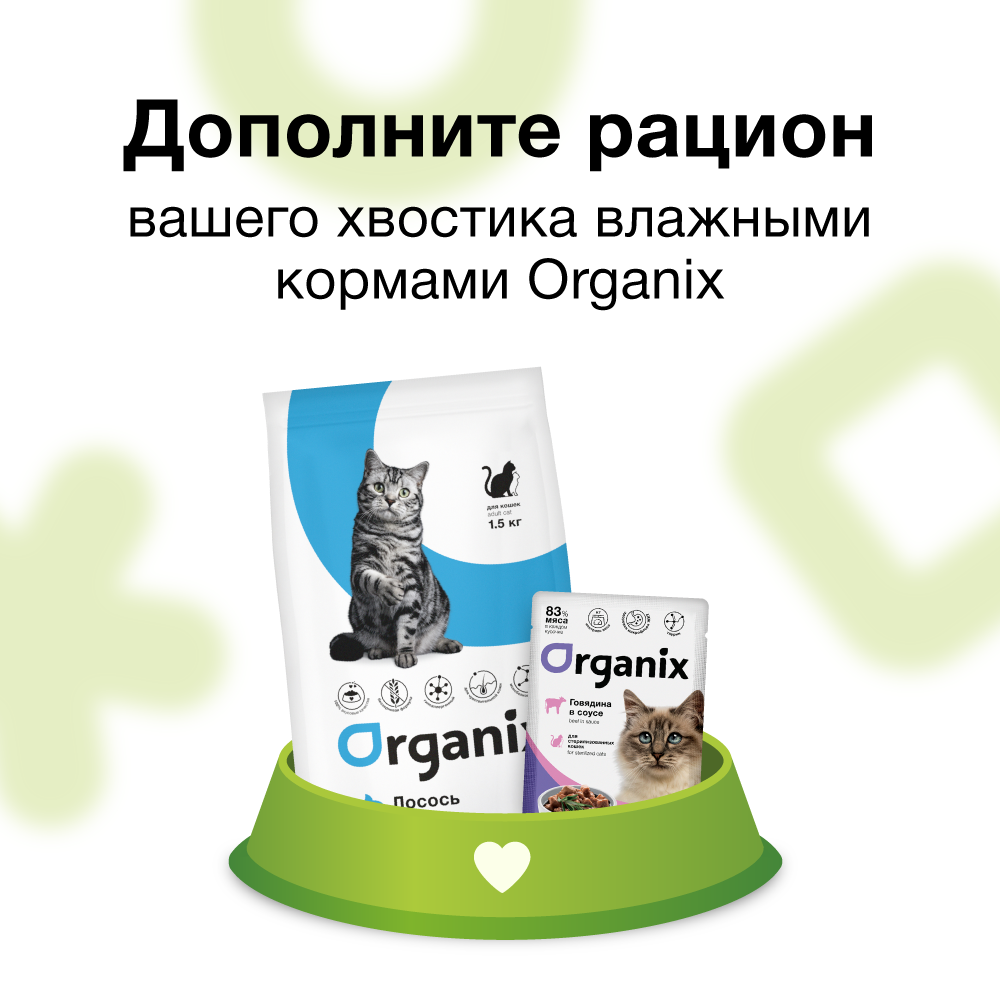 СохранитьOrganix Для кошек с чувствительным пищеварением: свежий лосось (Adult Cat Fresh Salmon) (1,5 кг) интересное: