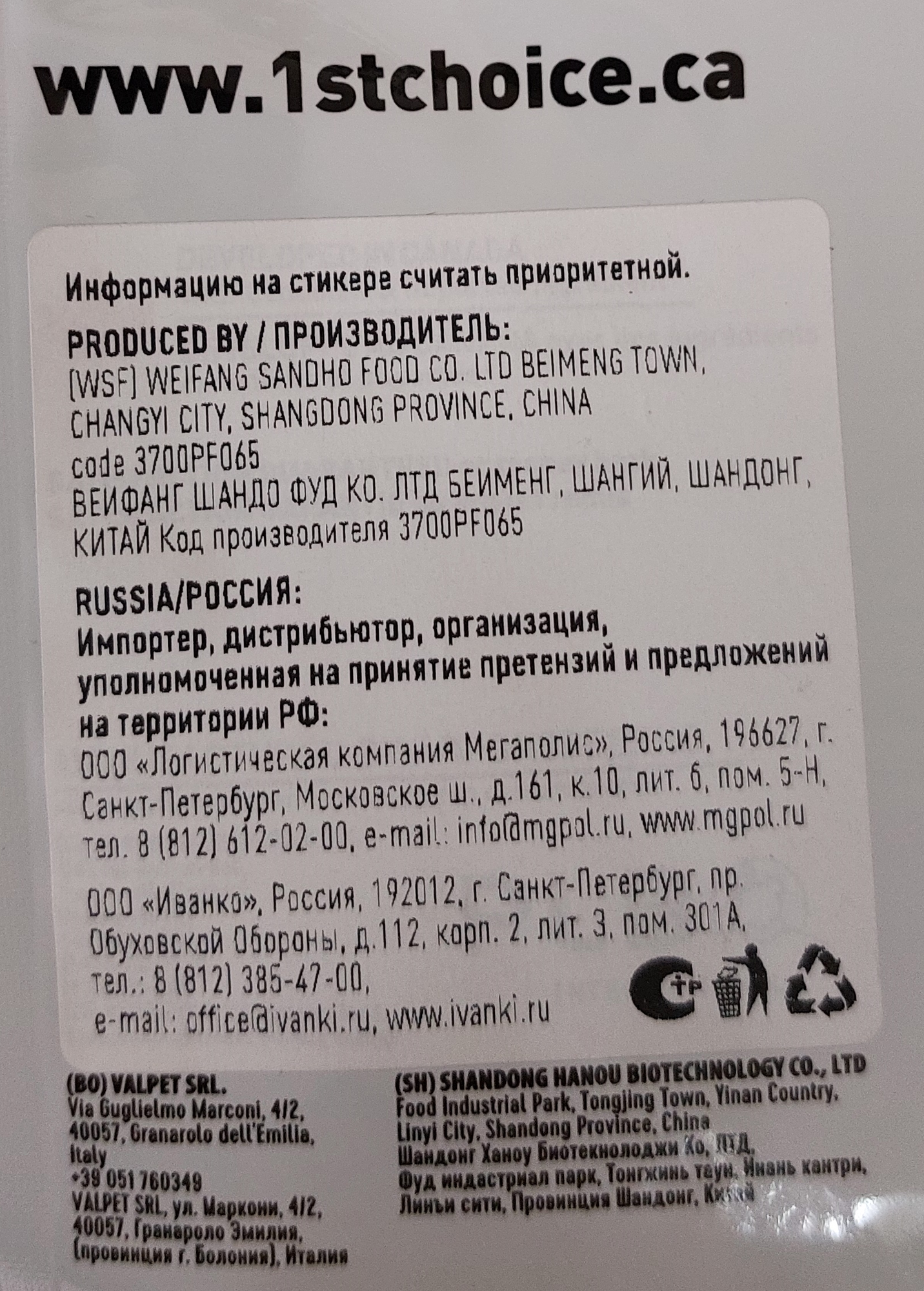| Производитель | 1st Choice |